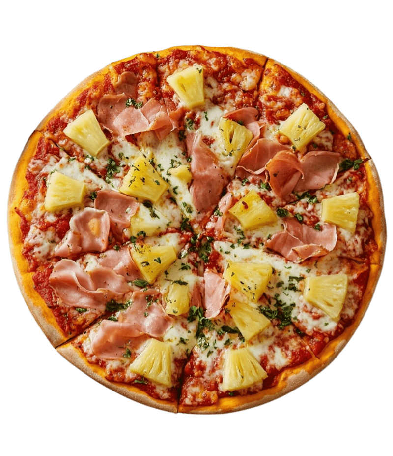 rajčatové sugo, mozzarella, dušená šunka, ananas