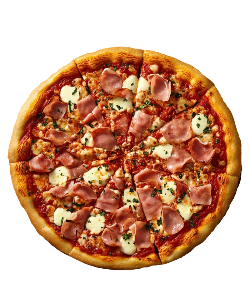 rajčatové sugo, mozzarella, dušená šunka, žampiony